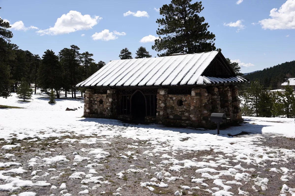 Denver acquired the 108-acre Fillius Park, named for Denver Park Board member Jacob Fillius, in 1914. There’s another Benedict-designed shelter here, with openings in its north facade oriented toward the Continental Divide. The shelter’s detail makes it one of the most important structures in the mountain parks system. The Fillius Park well house will be re-roofed and its log walls repaired.