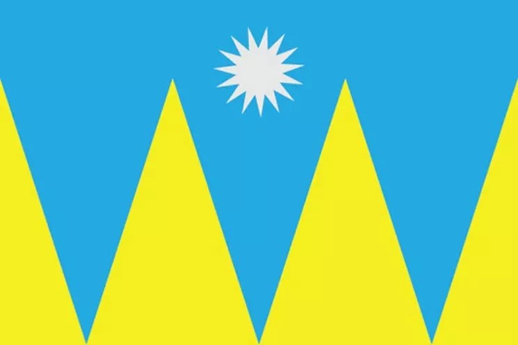 Valverde: “This near westside Denver neighborhood’s name translates to “green valley” from Spanish. Founded in 1899, the early developers saw the beautiful area buffering the South Platte River as a valley of flourishing natural vegetation and trees. The same river which gave the neighborhood its name also almost led to its destruction in the flood of 1965, when nearly 3,000 buildings in the neighborhood were damaged or destroyed. The river and natural topography are reflected in the design of the flag.”