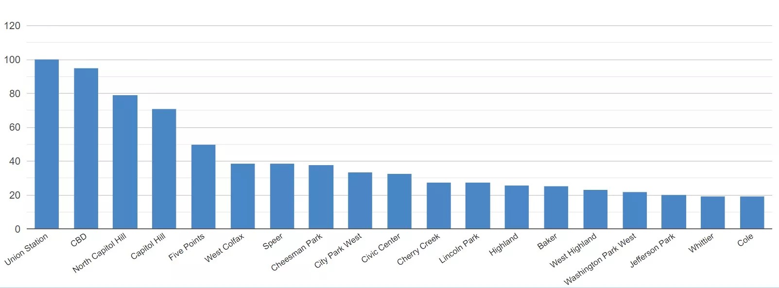Continue to see violent crime, property crime, other crime and overall crime data in Denver from September 19 to October 3 for the nineteen top neighborhoods in each category: