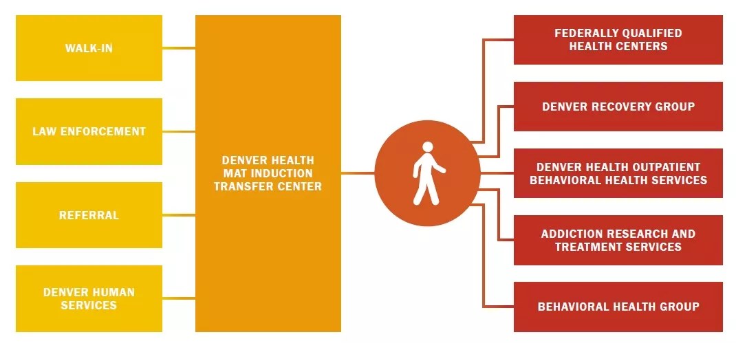 A graphic showing resources available to individuals with opioid addiction included in the Denver Opioid Response Strategic Plan.
