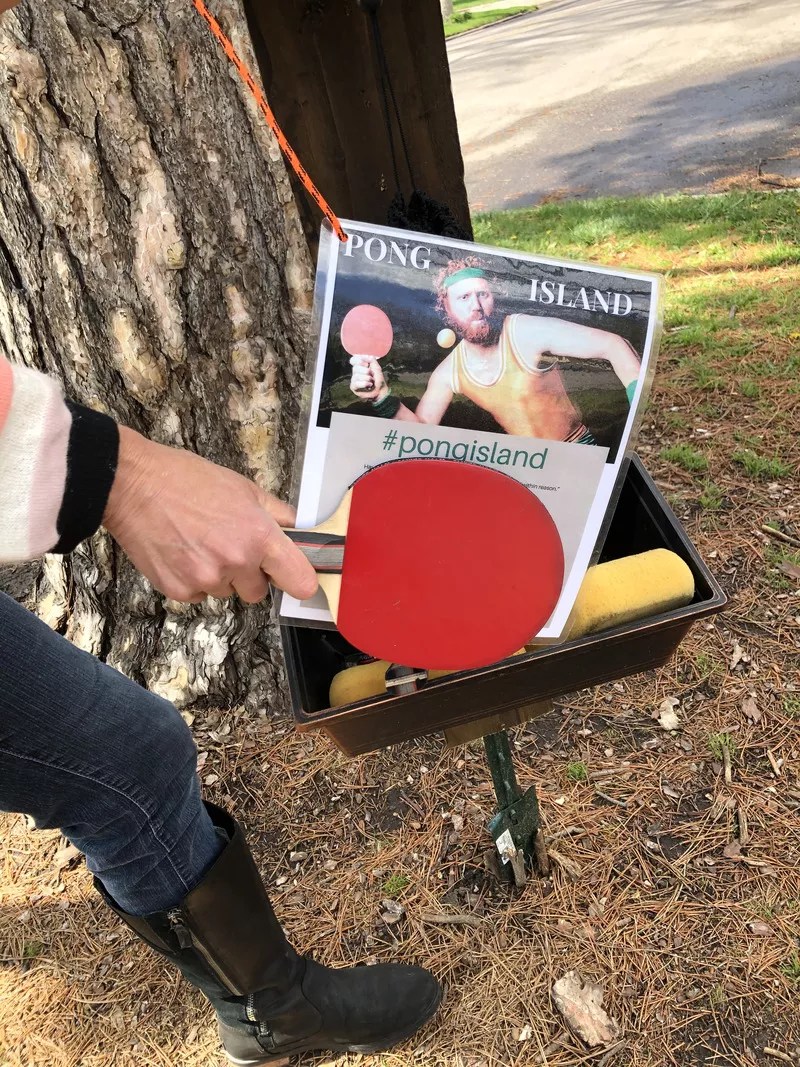 The pandemic has sparked creativity and community in all kinds of ways. In Italy, residents of adjacent apartment complexes stood on their balconies and joined in song. In Denver, two people decided to start howling at 8 p.m., and that sound echoed from Cheesman Park around the world. A few blocks away, at East Fourth Avenue and Williams Street, a homeowner decided to put a ping-pong table in the middle of a traffic island in a very residential area, equip it with paddles and balls, and nail up a sign announcing the sudden existence of Pong Island.