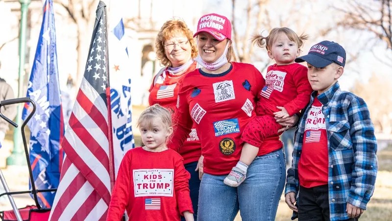 Another photo from “Hundreds Gathered at Colorado Capitol to Protest Election” captures a tender family moment.