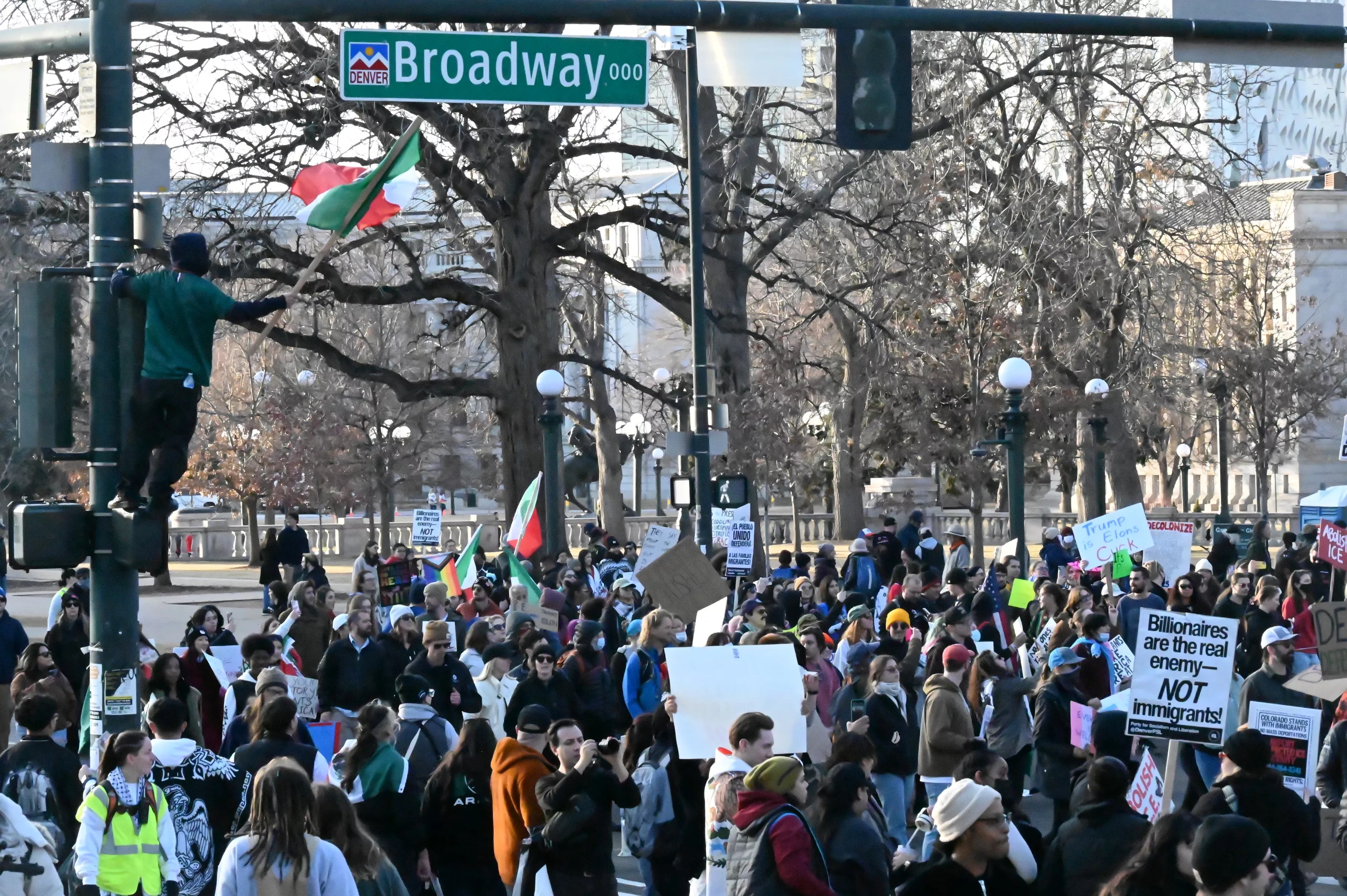 The protest followed an all-day gathering on Wednesday, February 5, that saw about 5,000 people amass at the State Capitol and march briefly up and down West Colfax Avenue for the Fifty State Protests. Similarly, Mexican pride became one of the strongest messages of the gathering even though it was originally meant to oppose Project 2025, a conservative policy plan written by the Heritage Foundation that includes securing the border and mass deportations.