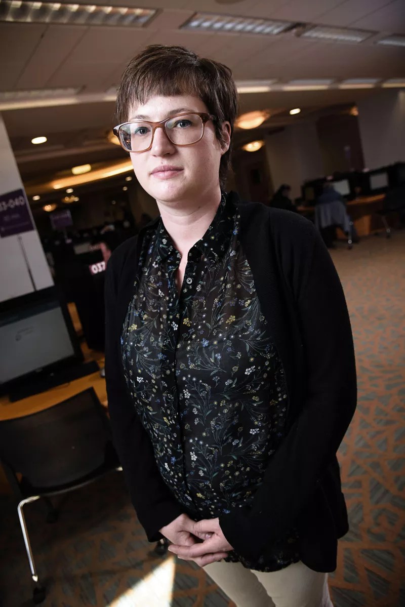Brogan is a peer navigator with the Denver Public Library. She and three other peer navigators were hired in January 2017; the Colorado Mental Wellness Network received grants from the U.S. Department of Justice to fund the navigator program, which works with the homeless and mentally ill visitors among the 2,300 people that the Central branch sees a day.