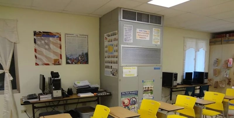 A classroom cooling unit of the type installed at some Denver Public School facilities that don’t have central air-conditioning.