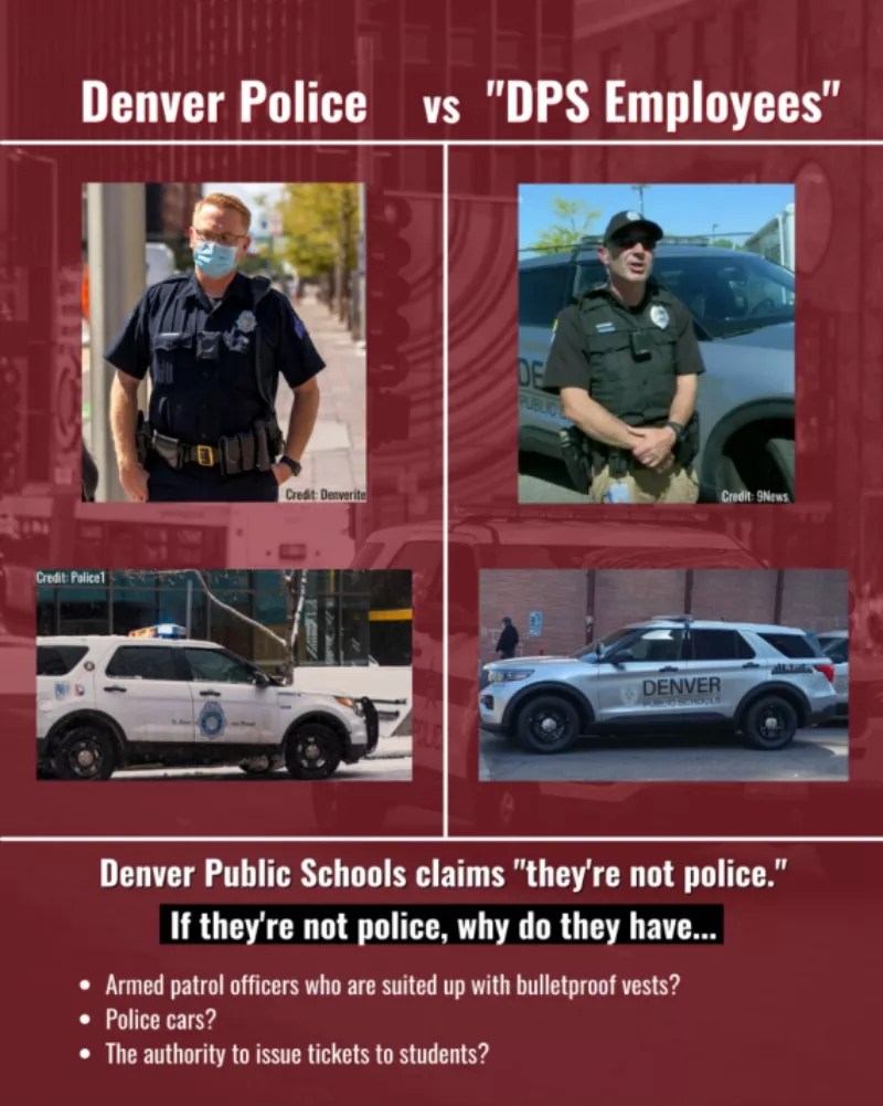 DPS does not have the legal authority to dictate to Denver Police when a ticket or arrest is issued. DPD is mandated to follow their internal policies and enforce laws as required by Colorado Revised Statutes and Denver Municipal Code. We have been intentional about asking DPD to conduct these enforcement actions away from school whenever possible. However, we are careful not to put our employees in a situation that would violate CRS Section 18-8-104, which defines the offense of obstructing a peace officer. This section makes it a crime to interfere with or hinder peace officers, firefighters, EMT providers, rescue specialists or first responder volunteers in the course of their official duties.
