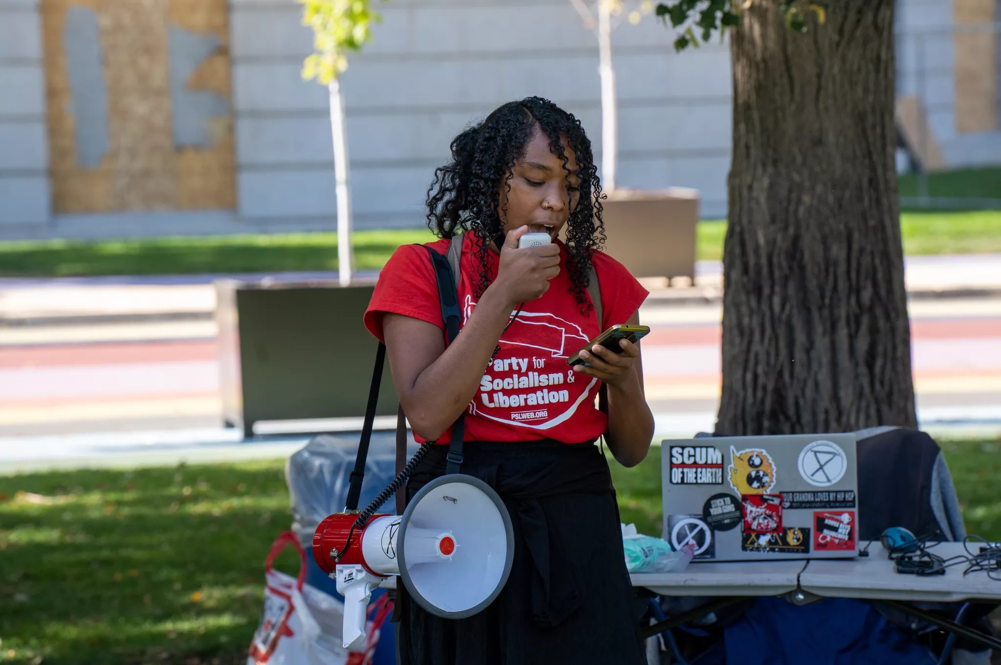 “We have more wealth than any country in the history of the world, and yet half a million people don’t have a home,” Claire Ragusin, a local member of the Party for Socialism and Liberation, told the gathering. “This country allows poor people to live on the street while entire apartment complexes sit empty. … The idea that homelessness is caused by moral failure is nothing but a coverup for the systems’ own failure to meet the needs of people.”