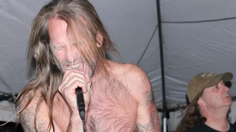 Gregg Stone giving his vocal cords a tryout with his metal band, Horse.