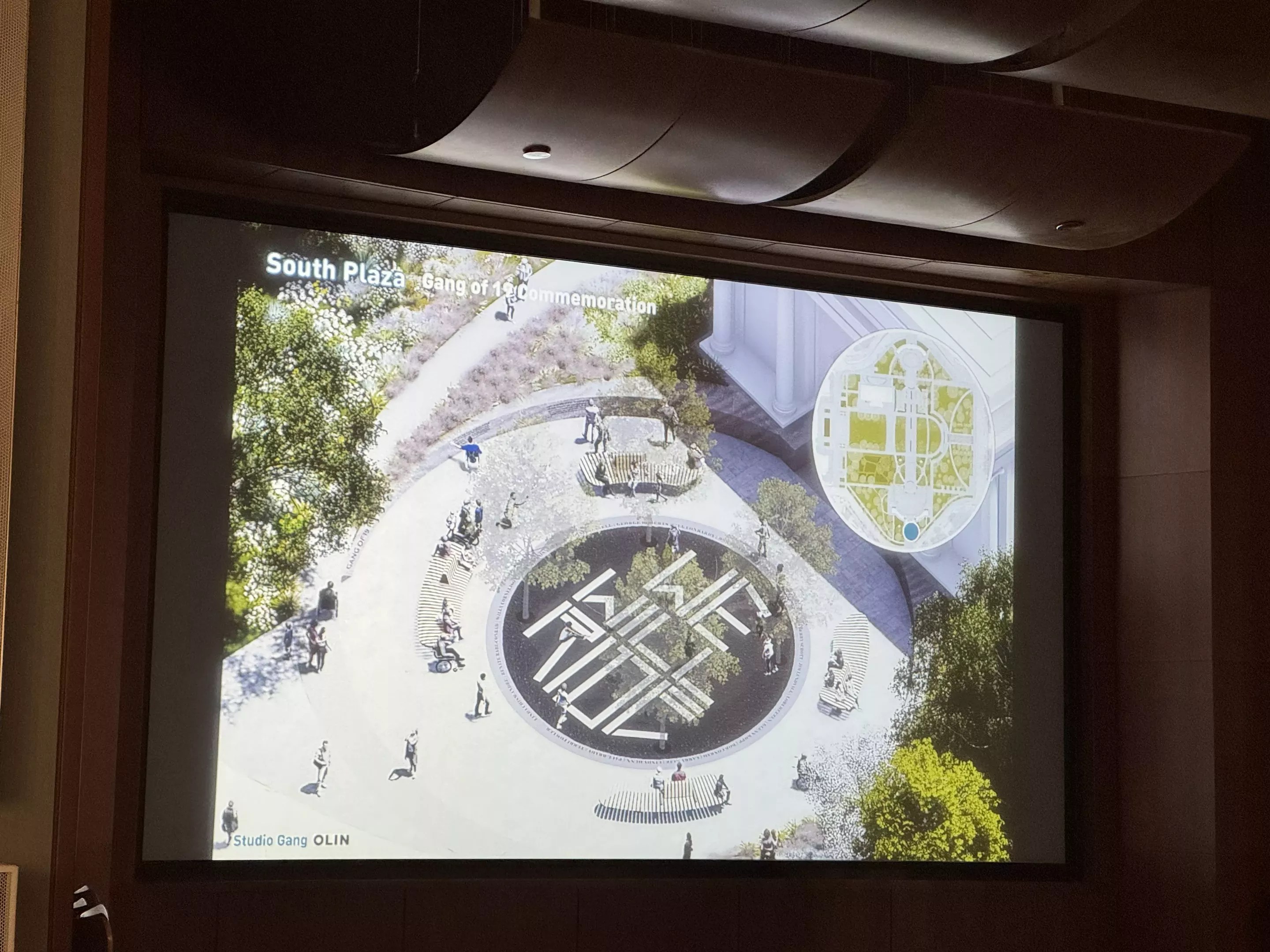 During the question-and-answer portion of the evening, a Denver tour guide asked city officials why they decided to put the memorial away from the part of the park closest to the actual events of the Gang of 19. Trevor Lee of OLIN said the design team looked at several locations, but the most visible is the southern plaza because it is a gateway to the park.