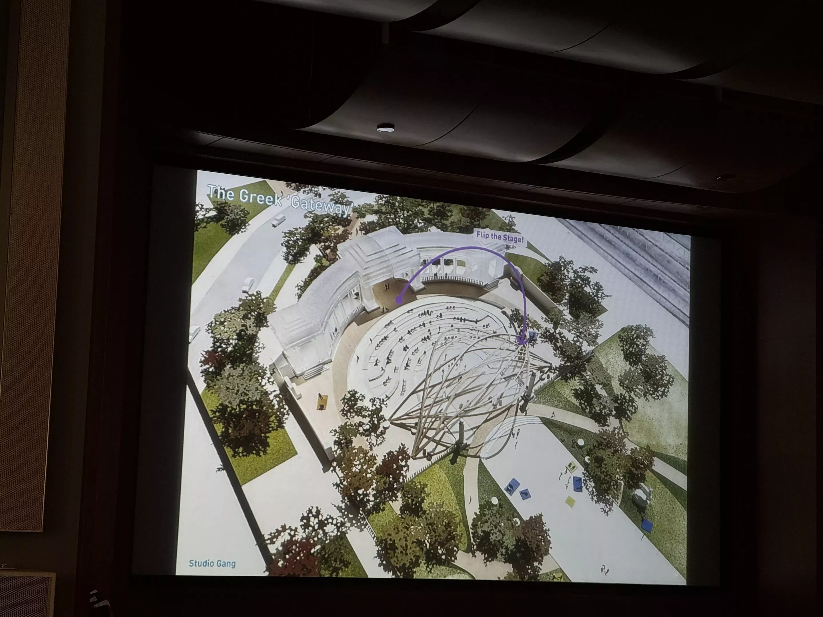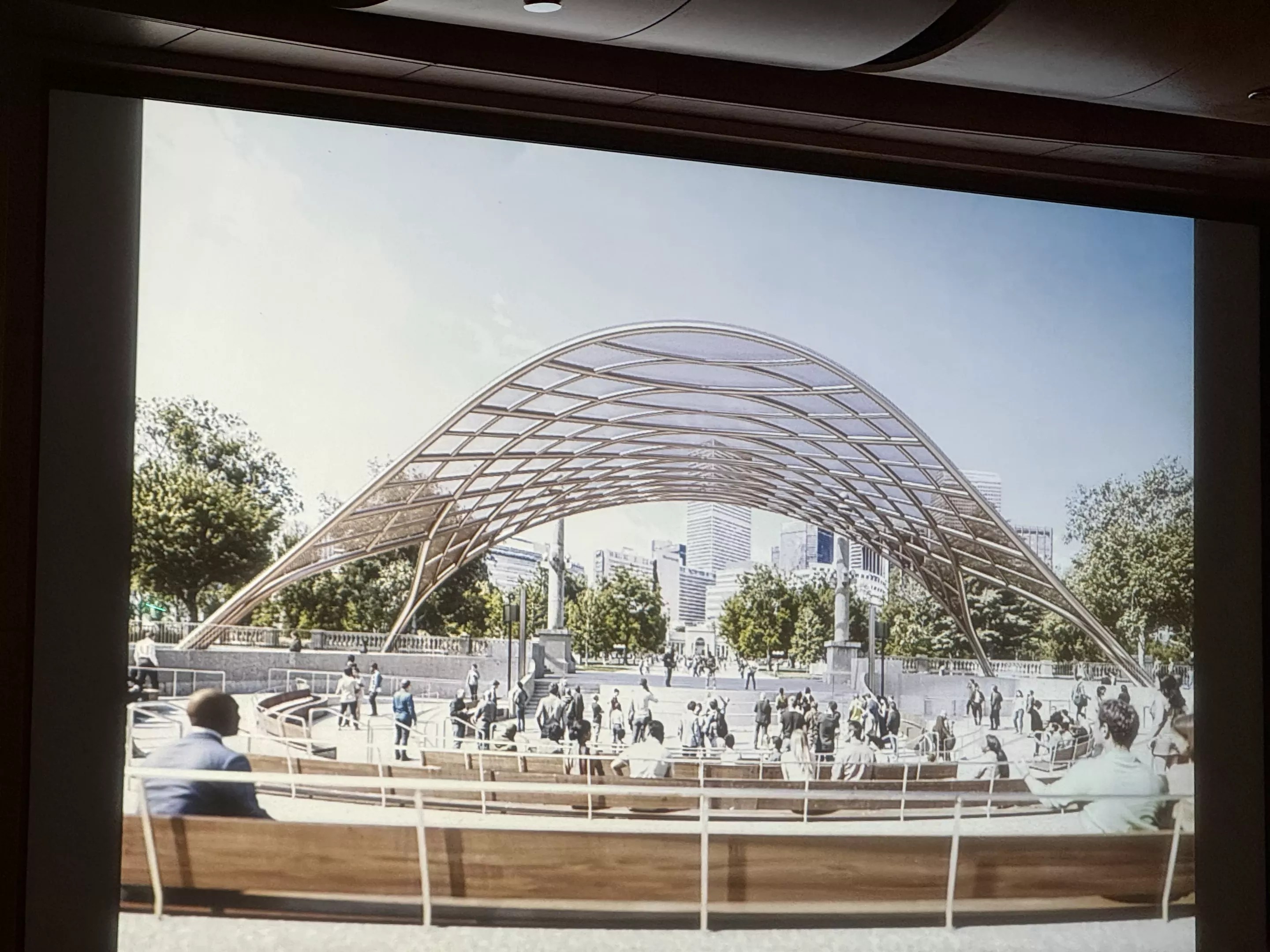 The arch over the new stage will be made mostly of steel, but Studio Gang is still working out what material could be used between the steel beams to allow some light to pass through the structure.