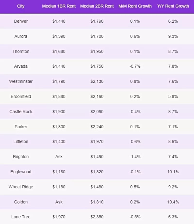 Median rents for two-bedroom units in Denver settled at $1,790 during August, compared to $1,810 in Golden, $1,820 in Englewood, $1,950 in Thornton, $1,970 in Littleton, $2,060 in Castle Rock, $2,130 in Westminster, $2,160 in Broomfield, $2,240 in Parker, and $2,350 in Lone Tree. Only the median two-bedroom rents in Brighton, Wheat Ridge and Aurora were lower than in Denver.