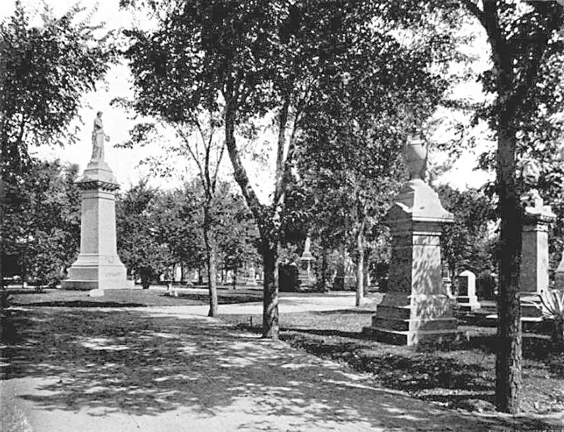 Riverside accepted its first burial on June 1, 1876: Henry Walton, whose white marble obelisk still stands, though it disintegrates a little more with each passing year. By that July, Dr. John H. Morrison had joined Walton as the fifth burial, a loss – or perhaps an addition – made poignant by the fact that Morrison was the original owner of the land beneath what would become the cemetery.