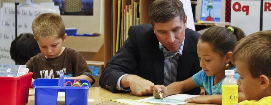 Superintendent Chris Gdowski with students at an Adams 12 Five Star school.
