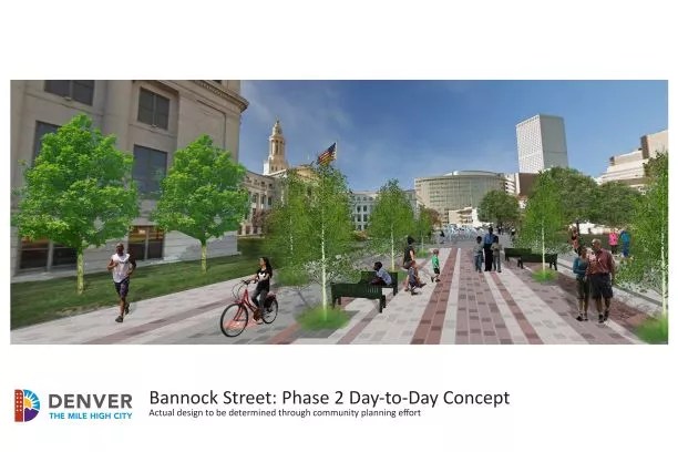 Bannock will close on April 21 and undergo an initial renovation to install trees, seating, a mural and other features, with reopening scheduled for sometime in May. City officials will then begin a community planning process to finalize plans for “phase two,” a more complete redesign that will transform the street into a “place of prominence and celebration for the city,” said Eulois Cleckley, director of the Denver Department of Transportation and Infrastructure.