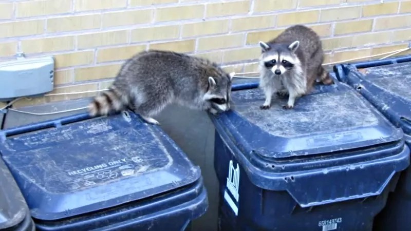 “Raccoons are nocturnal, dexterous and intelligent – and when they’re in an urban environment, they can learn. There was a study out of Iowa State University involving raccoons and three of the most typical types of garbage cans. They found that 30 percent of urban raccoons could open them, but 0 percent of rural raccoons were successful. So the urban raccoons learned to open garbage cans.