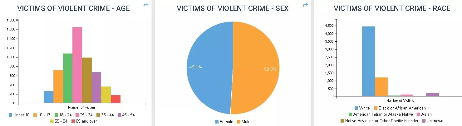 Here are the Denver numbers for 2018, with those from 2017 juxtaposed, along with a graphic that considers victims of violent crime by age, sex and race.