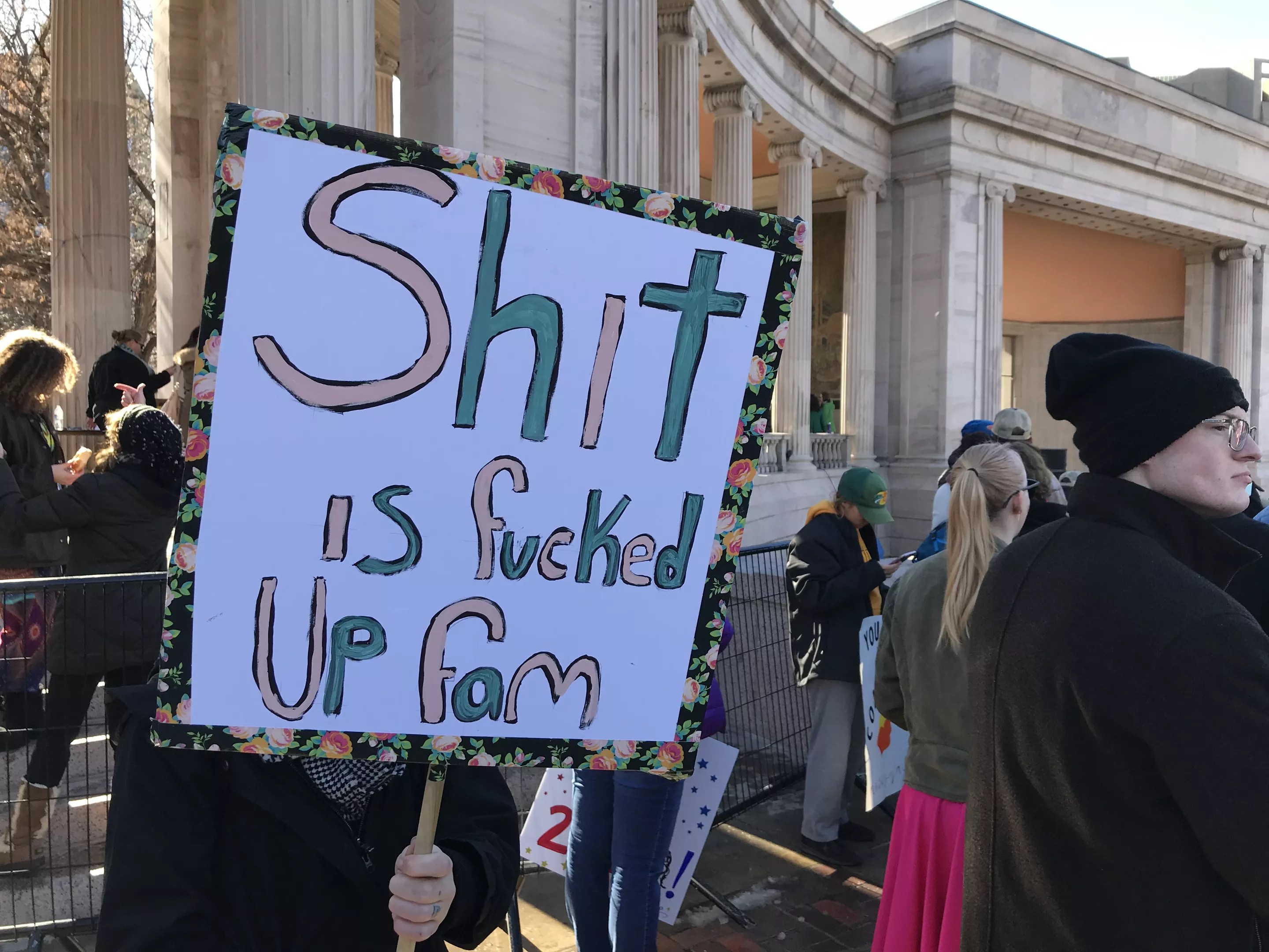 One new complaint at the 2019 March was the role that Senate Majority Leader Mitch McConnell has played and continues to play in the fundamental dysfunction of American government. This sign is one of the more sedate of the batch – compared to some, it’s downright kind, worthy of the Kentucky gentleman that McConnell pretends to be.