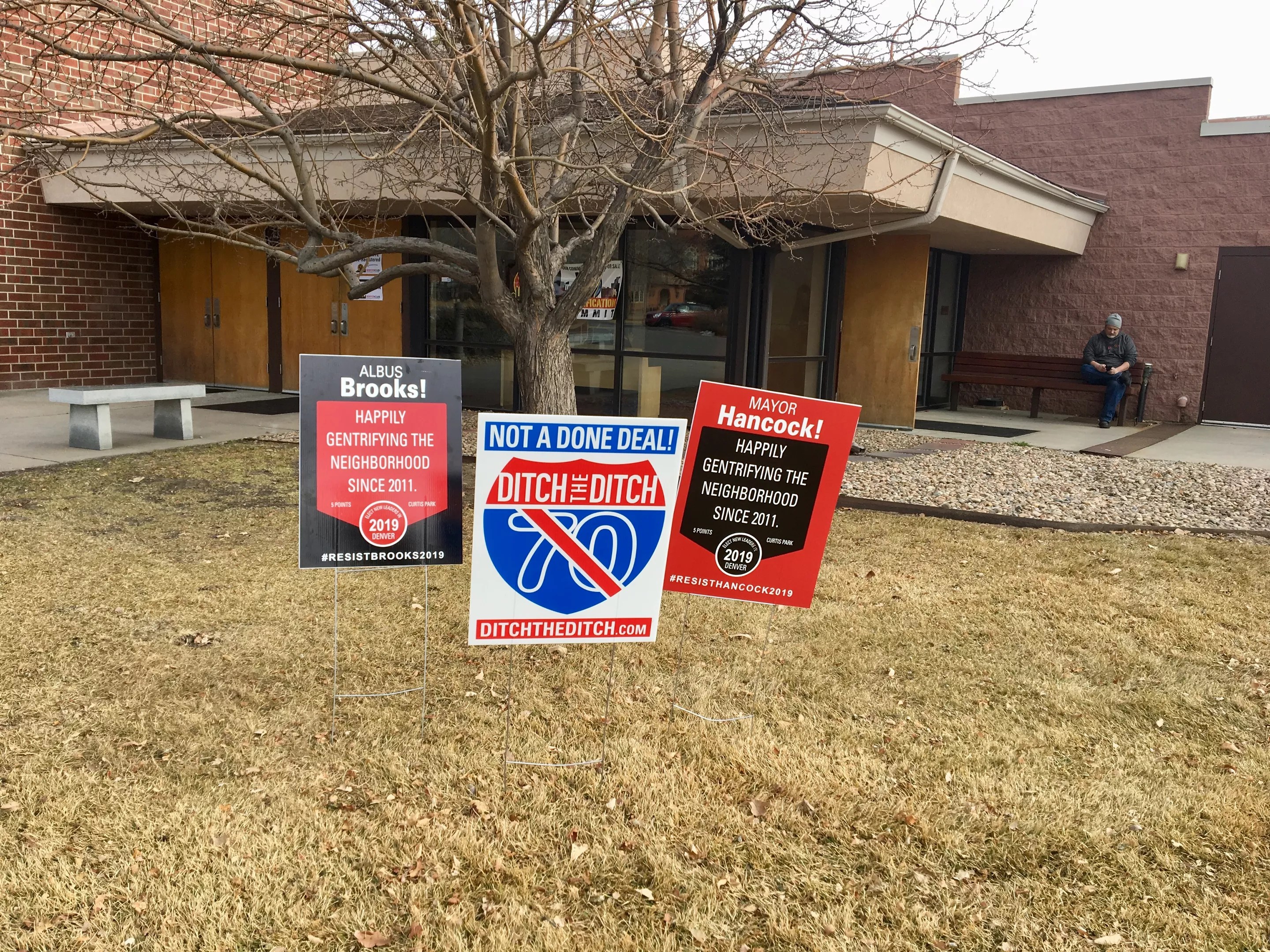 The same signs that mocked Hancock and Councilman Albus Brooks during November’s Ink! Coffee protests – like one that declared: “Mayor Hancock! Happily gentrifying the neighborhood since 2011” – were outside the summit.