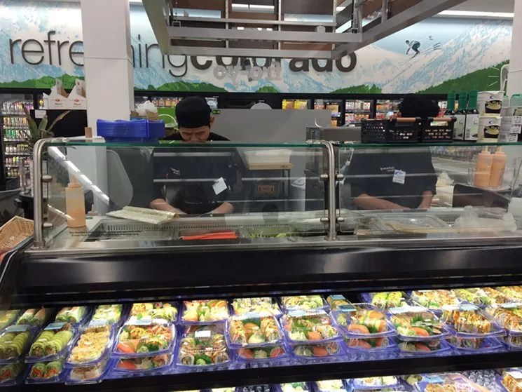 4. Skyline Park: Although the original Lawrence Halprin design is almost unrecognizable, this three-block urban oasis hosts a variety of seasonal activities and events, ranging from a beer garden and a movie series to a skating rink during the holiday season. Walgreen Sushi Westword