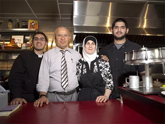 Obeid (left) with family members Omar, Miriam and Zeid inside their restaurant.
