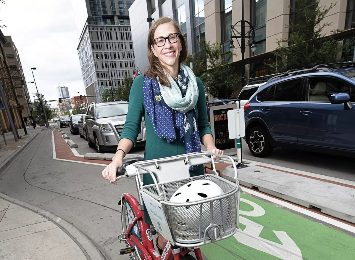 “We’re not saying everyone needs to walk or bike or take transit all the time,” says Crissy Fanganello, Denver’s transportation director. “But we have to build out a network that gives us the ability to do so, that’s safe and convenient and competitive. It comes down to an issue of space. For the most part, we’re not widening the roads we have. So how do we use our space more efficiently? At the rate of growth we’re experiencing, it’s no longer efficient to move people at the rate of one per vehicle.”