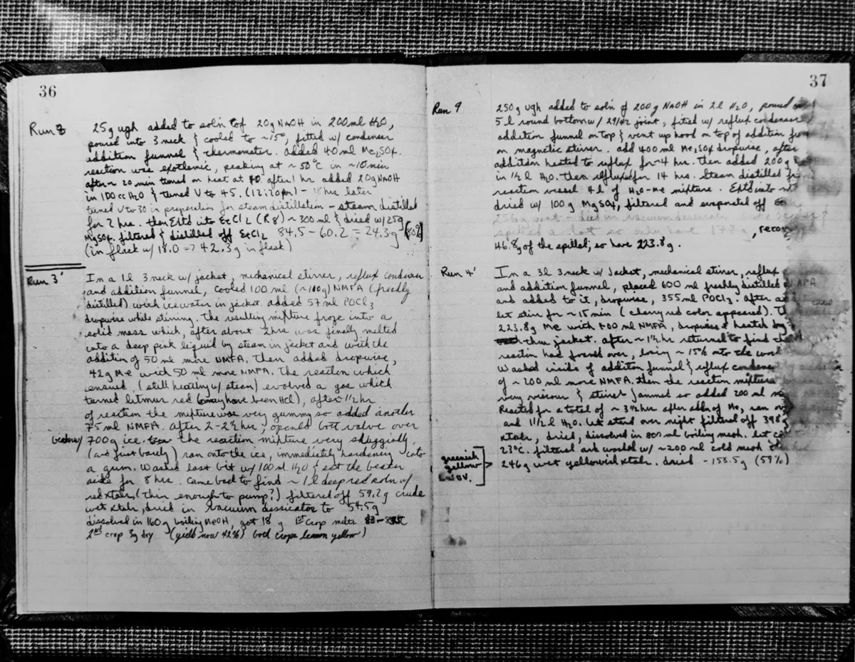 In his lab, Tim Scully kept running notes. This notebook, from the first Denver lab, shows Scully’s notes about making STP.