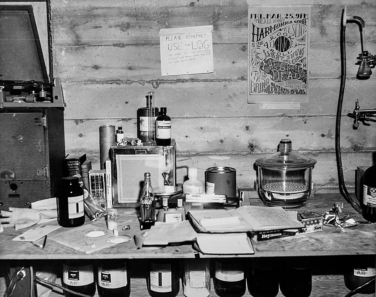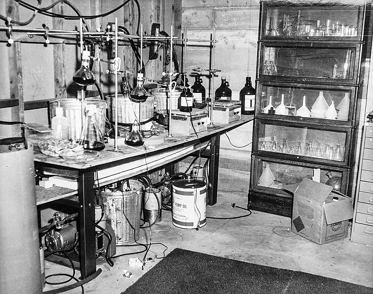 A crime-scene photo from the lab that was busted in Denver in 1968.