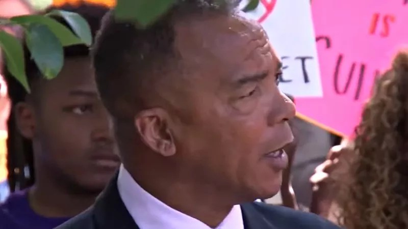 Reverend Promise Lee at a press conference about the De’Von Bailey police shooting.