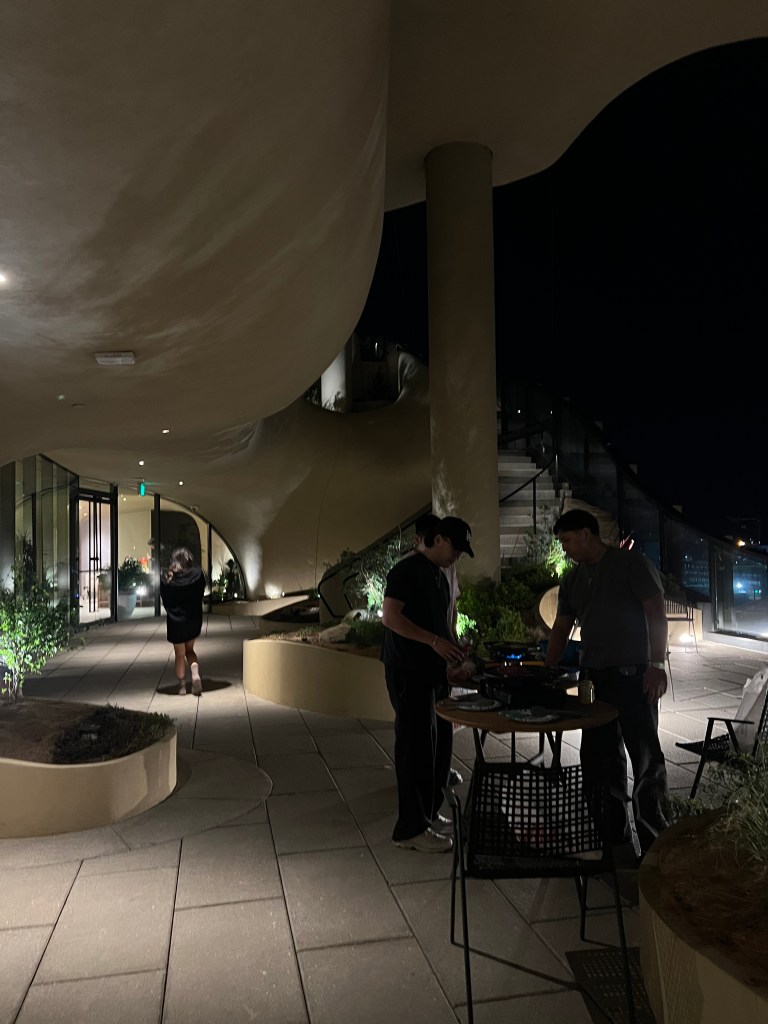 However, seventeen months after opening, the reality of One River North doesn’t quite align with the initial renderings. The luscious plants that made the design so striking are missing. Rather than trees, vines and water features, the canyon-like crack through the building reveals only a barren, beige concrete structure.