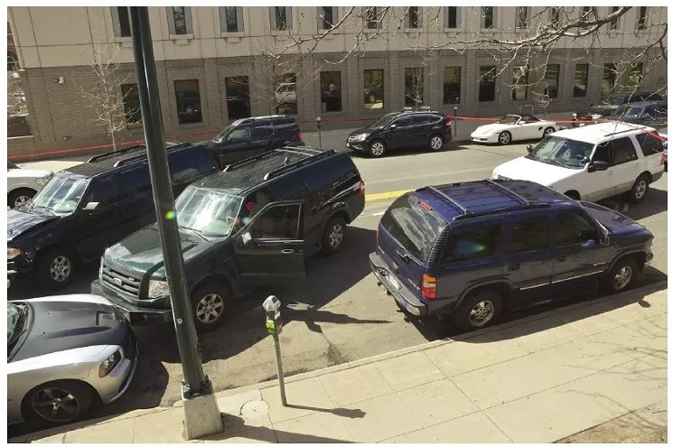 This photo shows how members of the Rocky Mountain Safe Streets Task Force pinned Dion Damon’s car against a curb.