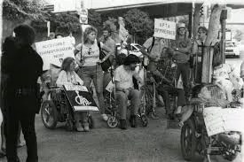 It began with a bus driving along its route back in July 1978. The driver had stopped at the intersection of Colfax Avenue and Broadway to pick up more riders. But before he could continue on his route, people in wheelchairs rolled in front of his vehicle. Minutes later, another bus traveling on the same route pulled up behind him, and more people in wheelchairs stationed themselves behind the second bus. Both buses were unable to move, and traffic in the heart of downtown Denver came to a standstill. The buses spent the next 24 hours locked in place while the protesters chanted, “We will ride!,” a slogan that changed history forever.