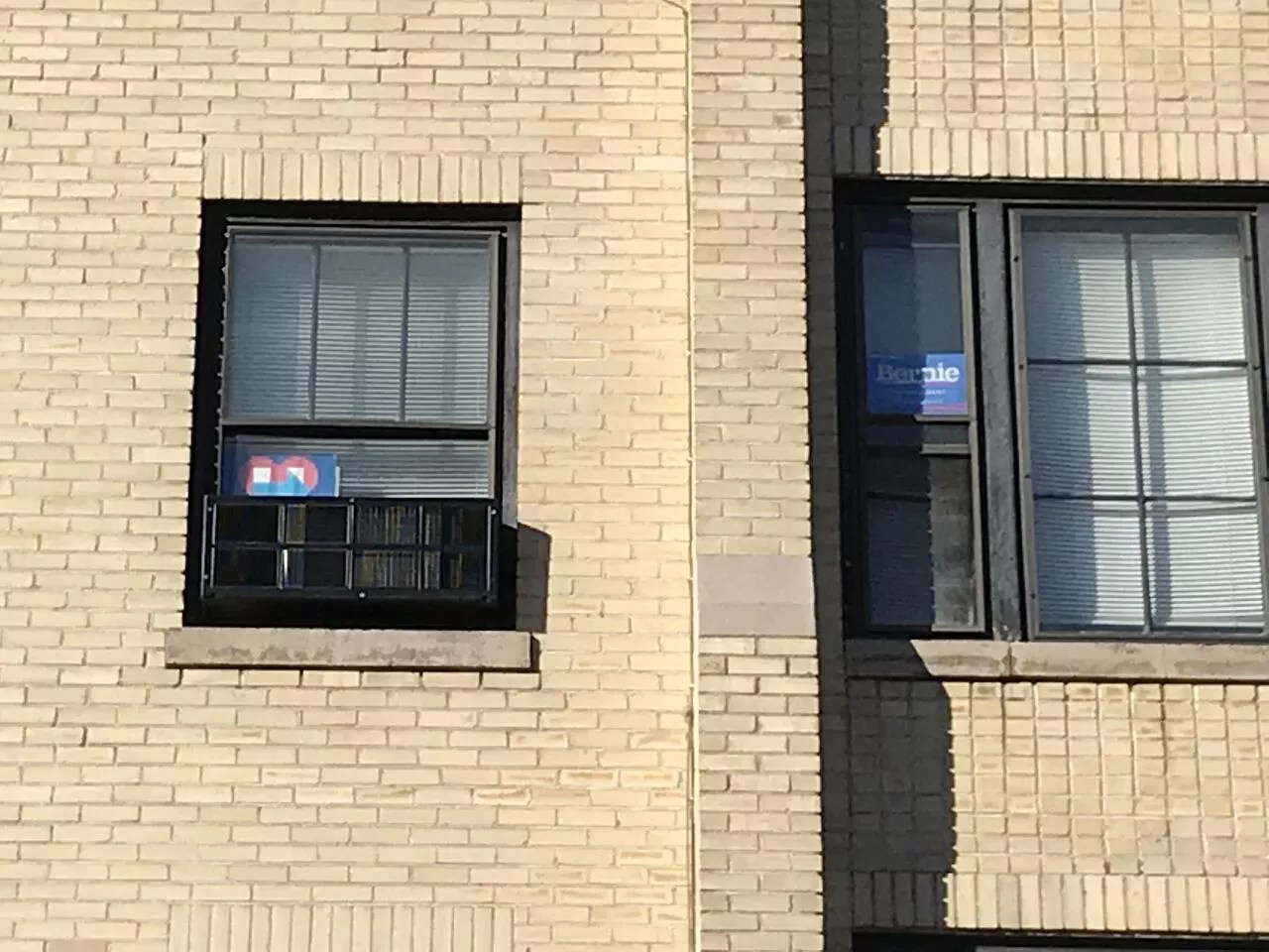 A Bernie Sanders sign next to a Hillary Clinton poster in Capitol Hill, nearly two years after the Democratic primaries.