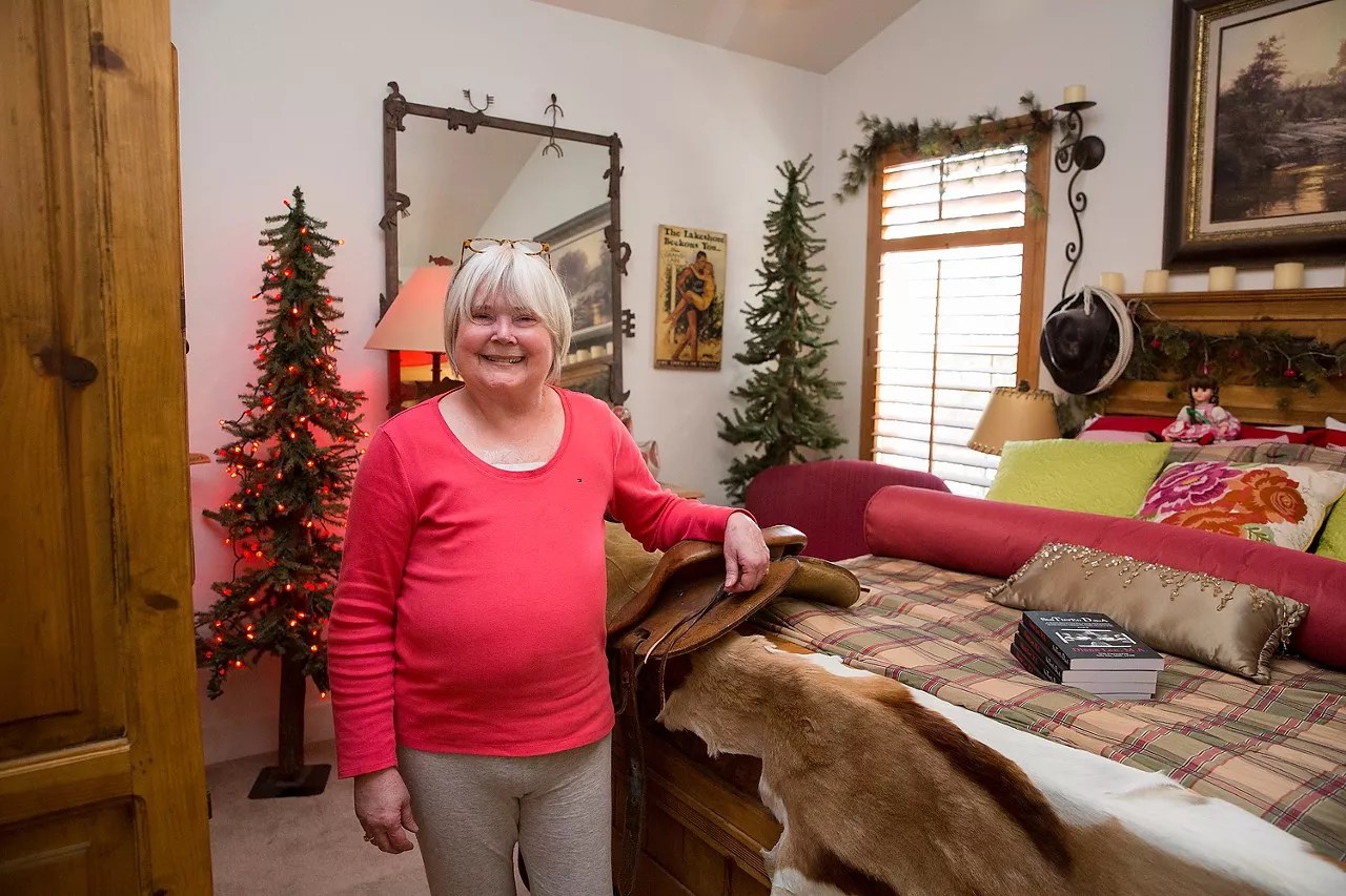 Dressed in a pink long-sleeved shirt and gray sweat pants, Lee looked at peace in the place she had called home for the past decade-plus. As guests arrived, she showed them her bedroom, which was decorated with artificial Christmas trees and garlands.