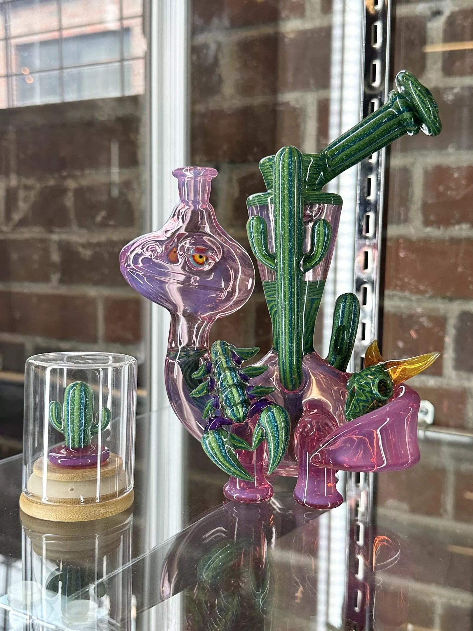 Some of Elbo’s most sought-after glass pipes – Raptors and Recyclerdactyls, for example – have sold for upwards of $10,000 to $15,000 depending on the size, style and colors. Collaborations with other renowned artists like Mike Luna and Darby Holm can go for anywhere between $25,000 and $50,000 or more.
