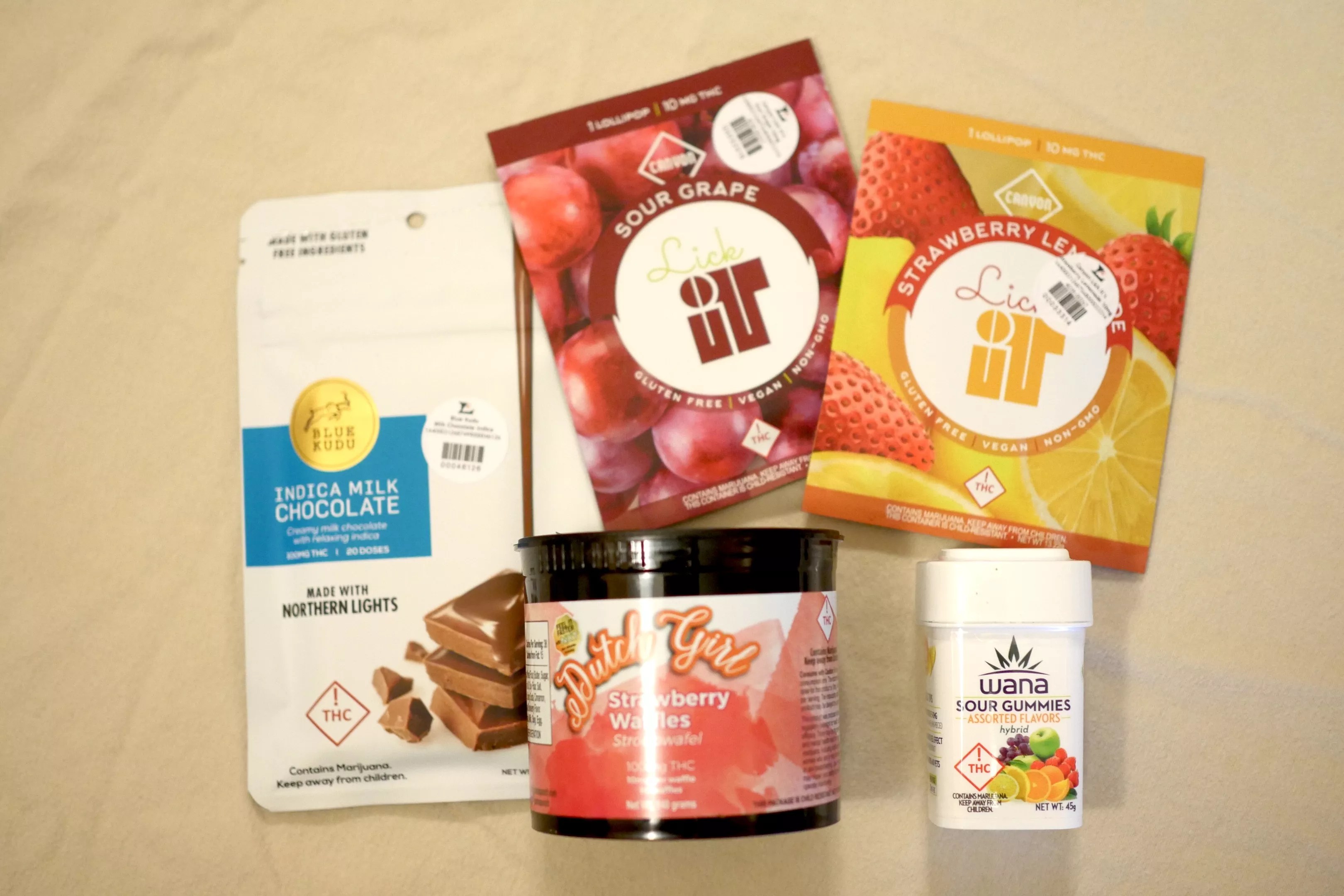 Most dispensaries have many options for outdoor home decor (telling the budtender about your weed-infused blueprint only makes the selection process better), including chocolate bars, gummies, mints, lollipops, baklava bits and more. We went with a chocolate bar, gummies, suckers and infused stroopwafels, as well as some buds and a joint for ornamental purposes.