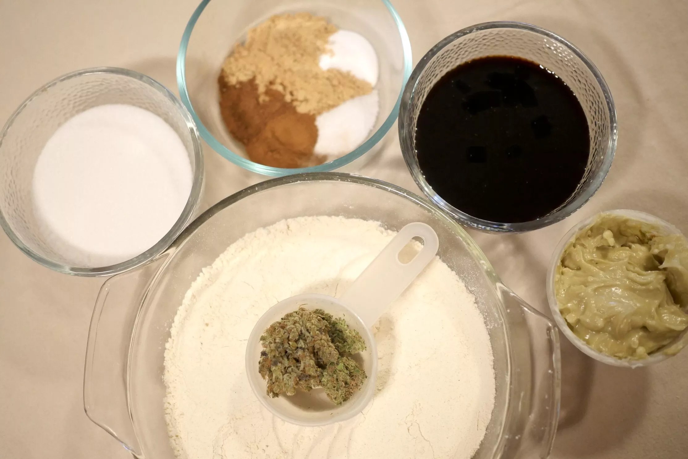 Sugar, flour, ginger, nutmeg, salt, cinnamon, molasses, shortening and cannabis are all you need for easy ganjabread.