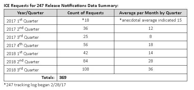 During the last three months alone, July through September, ICE made 108 requests for inmates’ release dates.