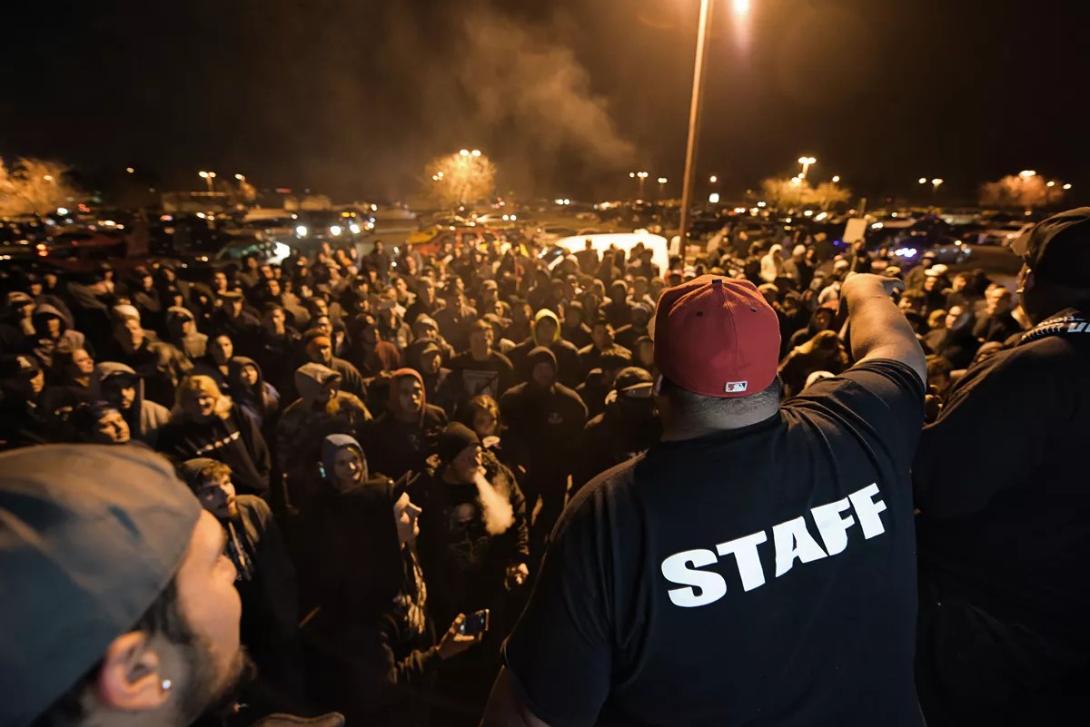 Hundreds of engines revved as the meet was broken up by the police, who estimated that 500 cars and 1,200 people had gathered. Some allegedly hurled beer bottles at police cruisers, and one driver affiliated with the event quickly ran a red light and smashed into another car. Lorentz, who was not at the meet, says his officers characterized the night’s activities as “general mayhem.”