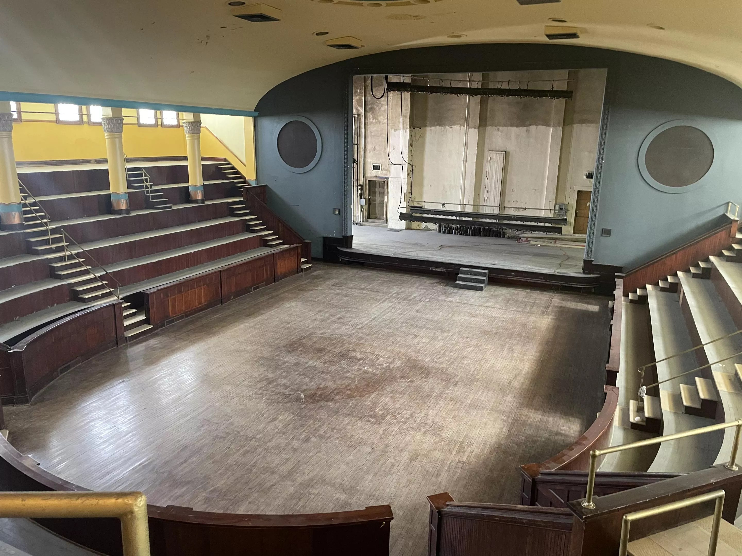The old-fashioned switchboard backstage still has power. There’s an organ, as well, though the NPU team hasn’t determined if it would work.