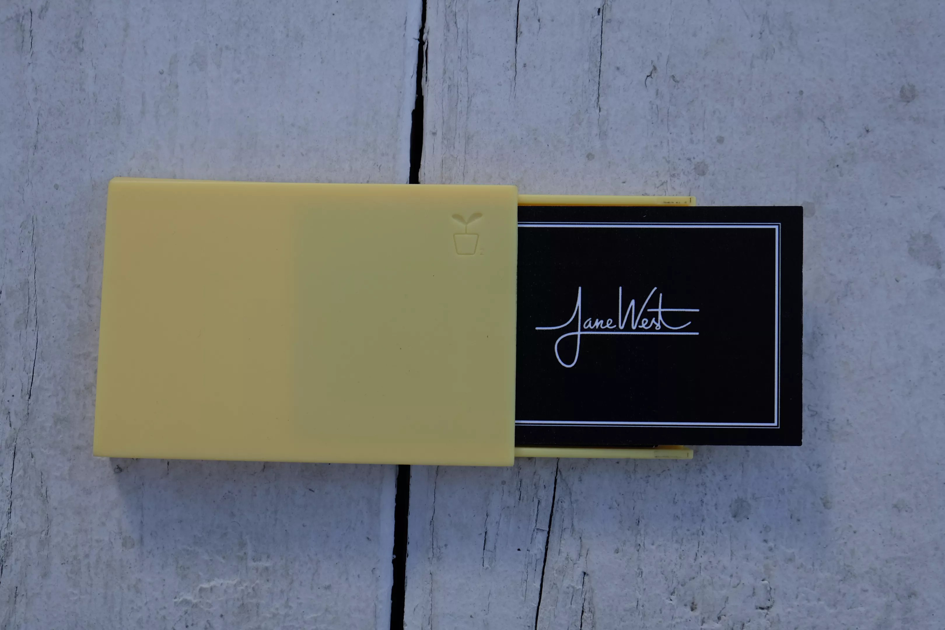 West orders her business cards from Moo. They’re thick and more expensive, so she carries a holder to keep them looking nice.