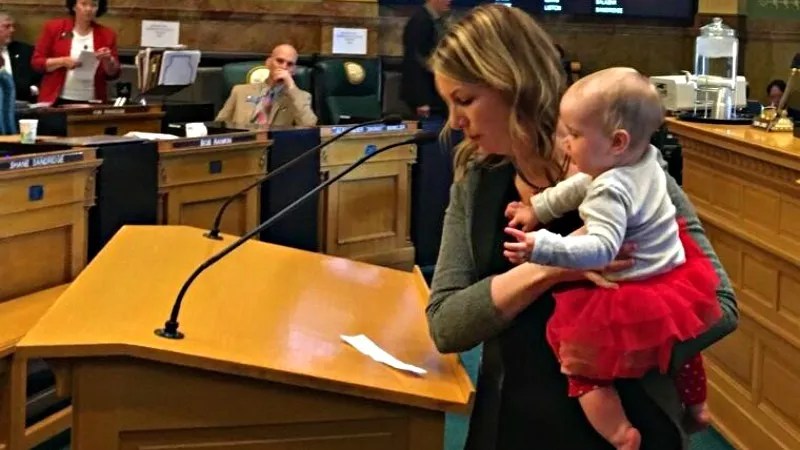 Jessie Danielson multi-tasking while serving in the Colorado House of Representatives.
