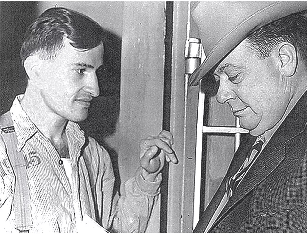 “I don’t think so.” Warden Roy Best reads the death warrant to Arridy at his cell door, shortly before his execution. Historical image from 2012 print edition of Westword.