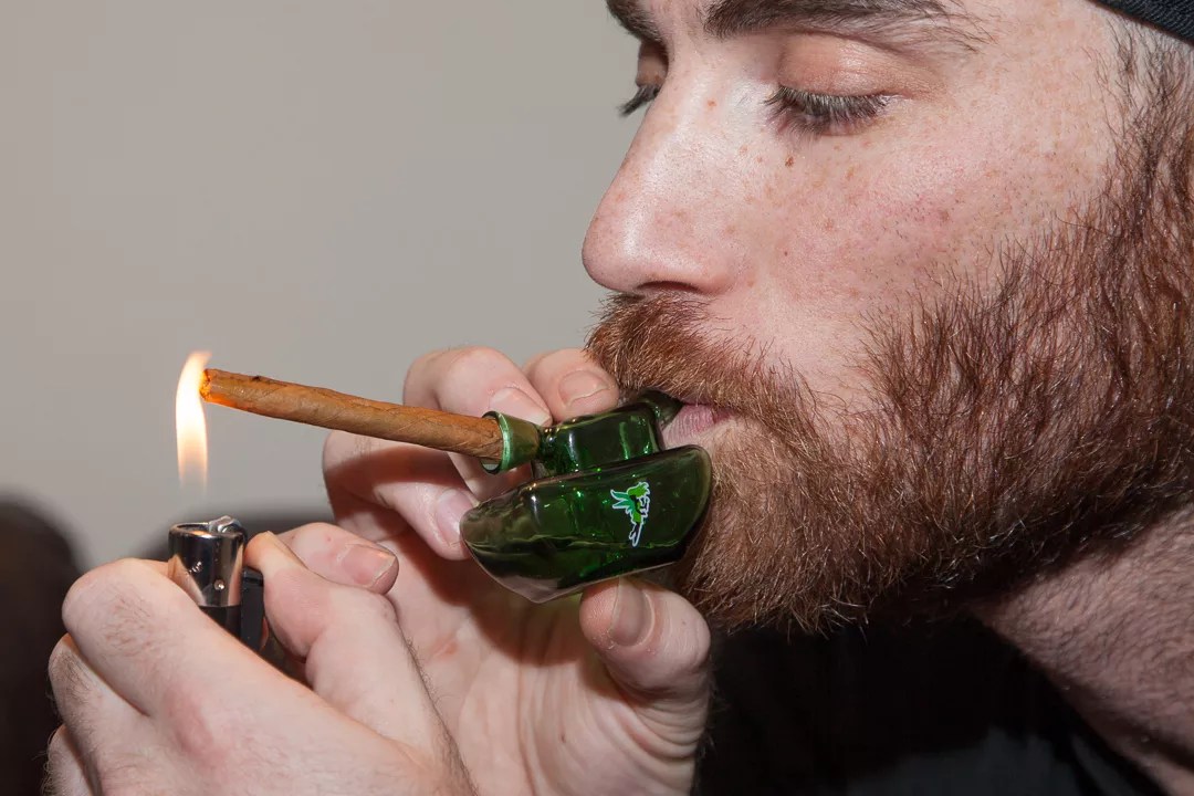 Light the blunt before putting it in the bubbler if you value your eyebrows.