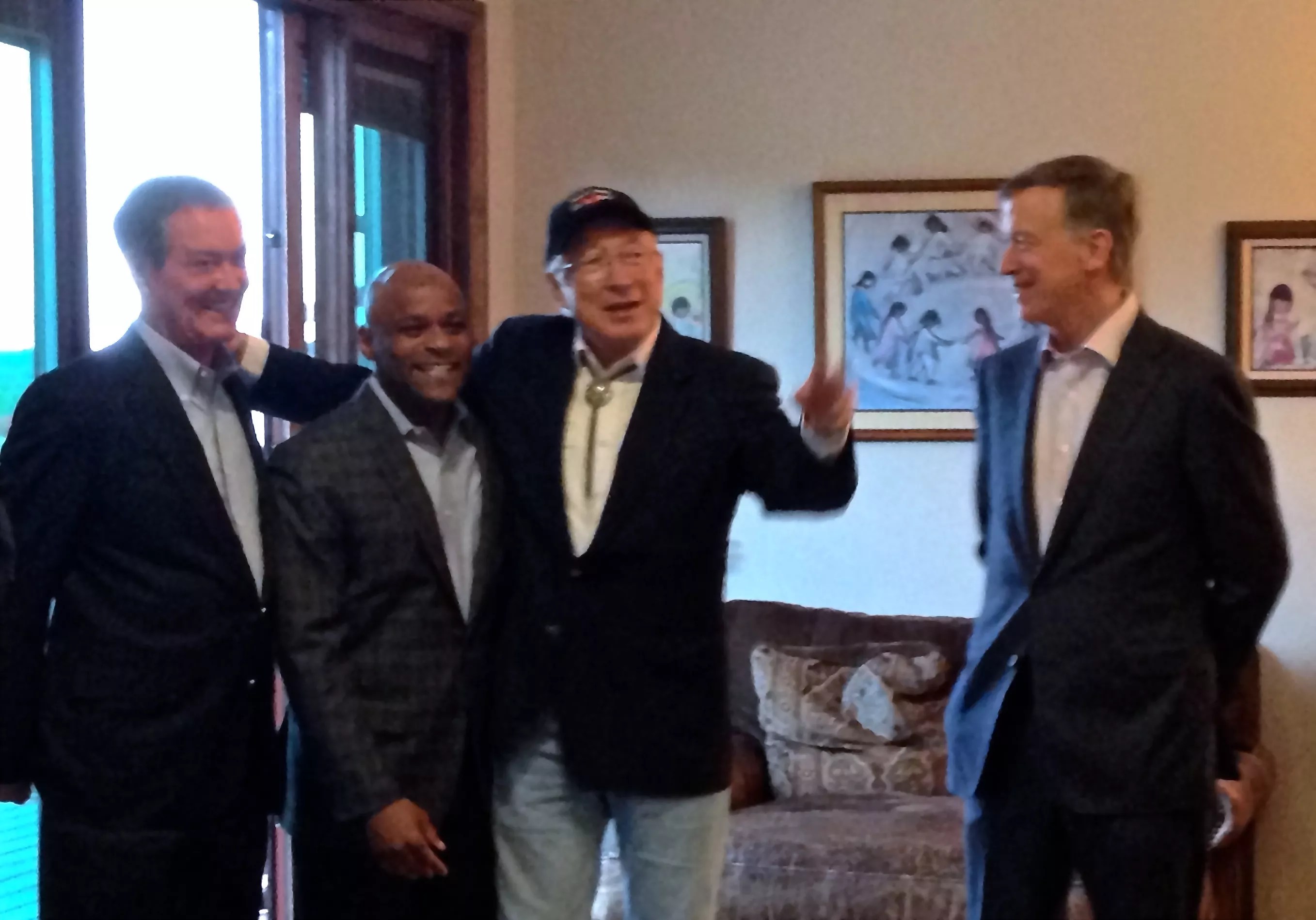 Salazar then gathered Hickenlooper, Owens and Hancock for a group photo. Iphones materialized everywhere, people jabbing their thumbs on their screens to get personal snaps of the staged moment.