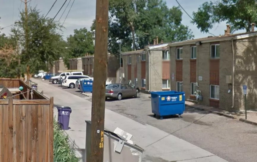 The alley behind the apartment complex on the 3300 block of Dahlia Street where Joel Gomez-Chavez was fatally shot.