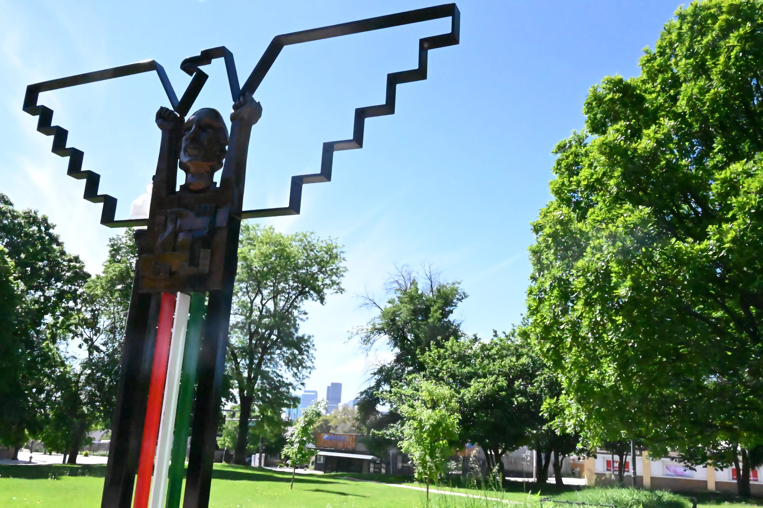 “La Raza Unida” is a sculpture by Emanuel Martinez created in 2021 after the park was renamed.
