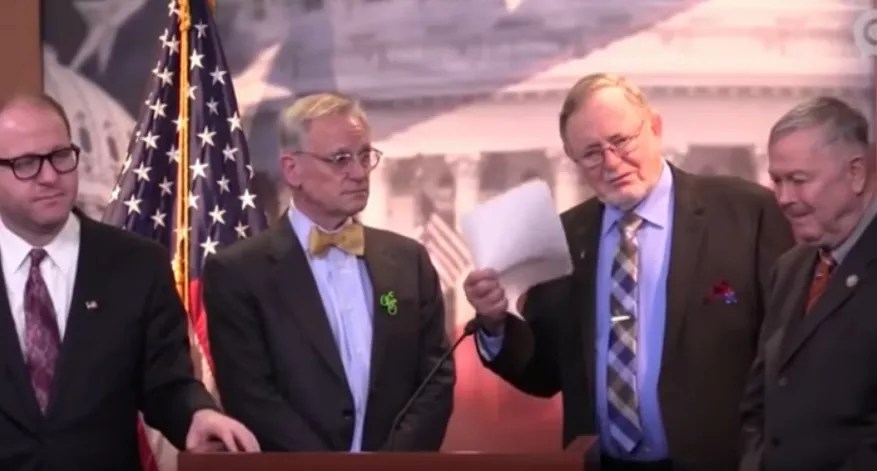 Still, the news shared by Oliver wasn’t all bad. He ballyhooed the existence of the so-called Cannabis Caucus in the U.S. House of Representatives in part because the photo above proves that progressive marijuana policies are being supported by a collection of the least-cool-looking people on the planet – among them Colorado’s own Representative Jared Polis, seen at left.