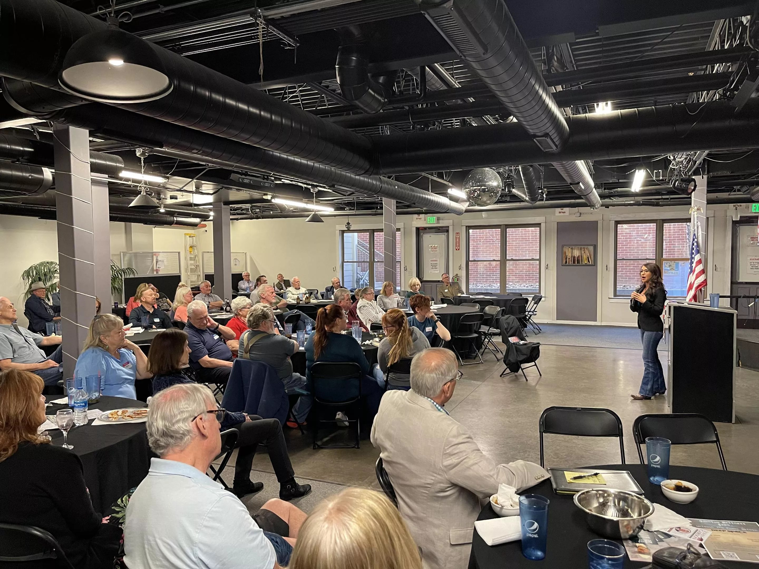 Lauren Boebert speaking to the Parker Conservatives group on the evening of April 3.
