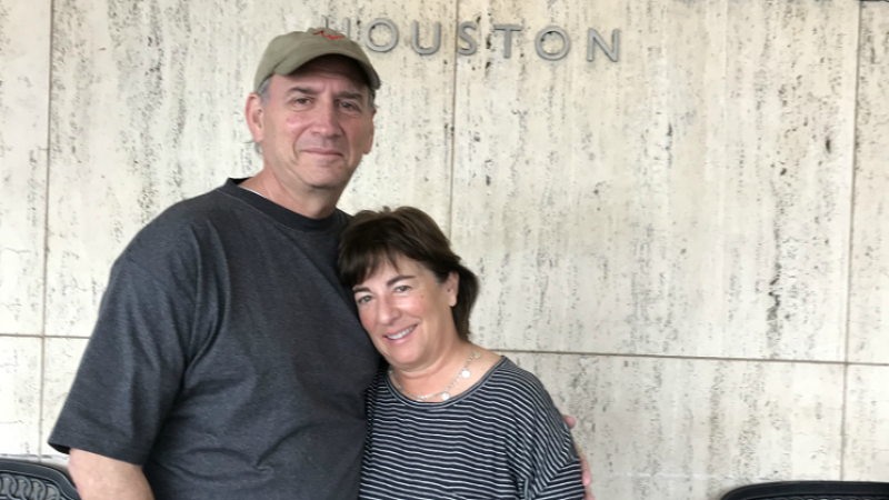Les and Paula Shapiro in 2018, outside the Houston medical facility where his oncology team was based.