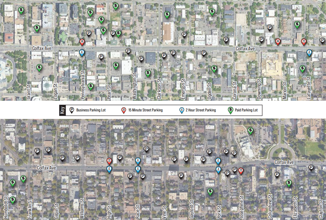 The city wants to show people how to continue to access businesses and traverse Colfax, according to Kuhn. The parking map is just one part of that effort.